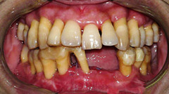晚期牙周炎:牙槽骨幾乎完全被破壞,牙齒松動、脫落